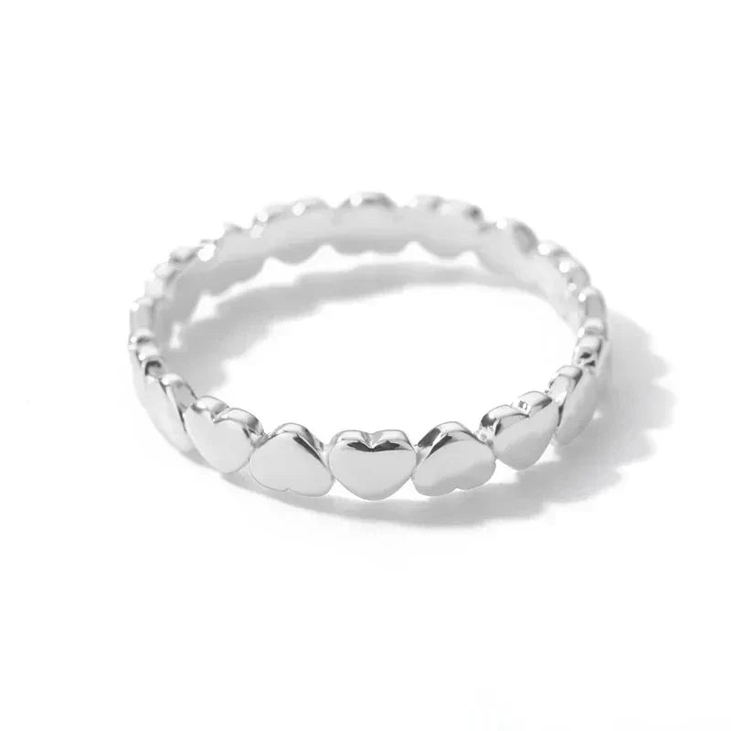 Ein bezaubernder Herzring, gefertigt aus hochwertigem, vergoldetem Edelstahl. Die durchgehenden, glänzenden Herzmotive verleihen diesem Ring eine verspielte und romantische Ausstrahlung. Perfekt als Geschenk für besondere Anlässe wie Geburtstage, Jahrestage oder den Valentinstag. Dank seiner Langlebigkeit und Schlichtheit eignet sich dieser Ring auch ideal für den täglichen Gebrauch oder als Ergänzung zu anderen Schmuckstücken. Ein Symbol für Liebe und Eleganz in einem modernen Design.