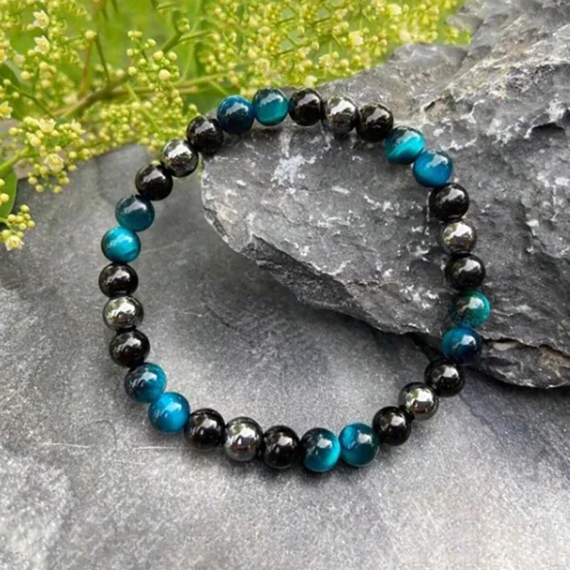 Dieses Armband ist eine elegante Mischung aus matten und glänzenden schwarzen Perlen, ergänzt durch dezent schimmernde, metallische Akzente. Es wurde mit hochwertigen Materialien gefertigt und verfügt über ein elastisches Band, das bequem um jedes Handgelenk passt. Das minimalistische Design macht es zu einem vielseitigen Accessoire, das sowohl zu lässigen als auch zu formellen Outfits getragen werden kann. Perfekt für Menschen, die einen dezenten, aber stilvollen Look bevorzugen.